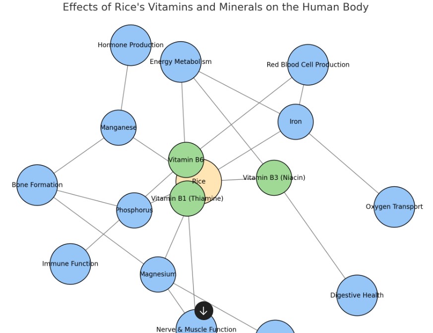 4) 비타민과 미네랄: 쌀에는 비타민 B군(특히 B1, B3)이 풍부하며, 철, 마그네슘, 셀레늄 등 다양한 미네랄이 포함되어 있어 신진대사 촉진 및 피로 해소에 도움을 줍니다.