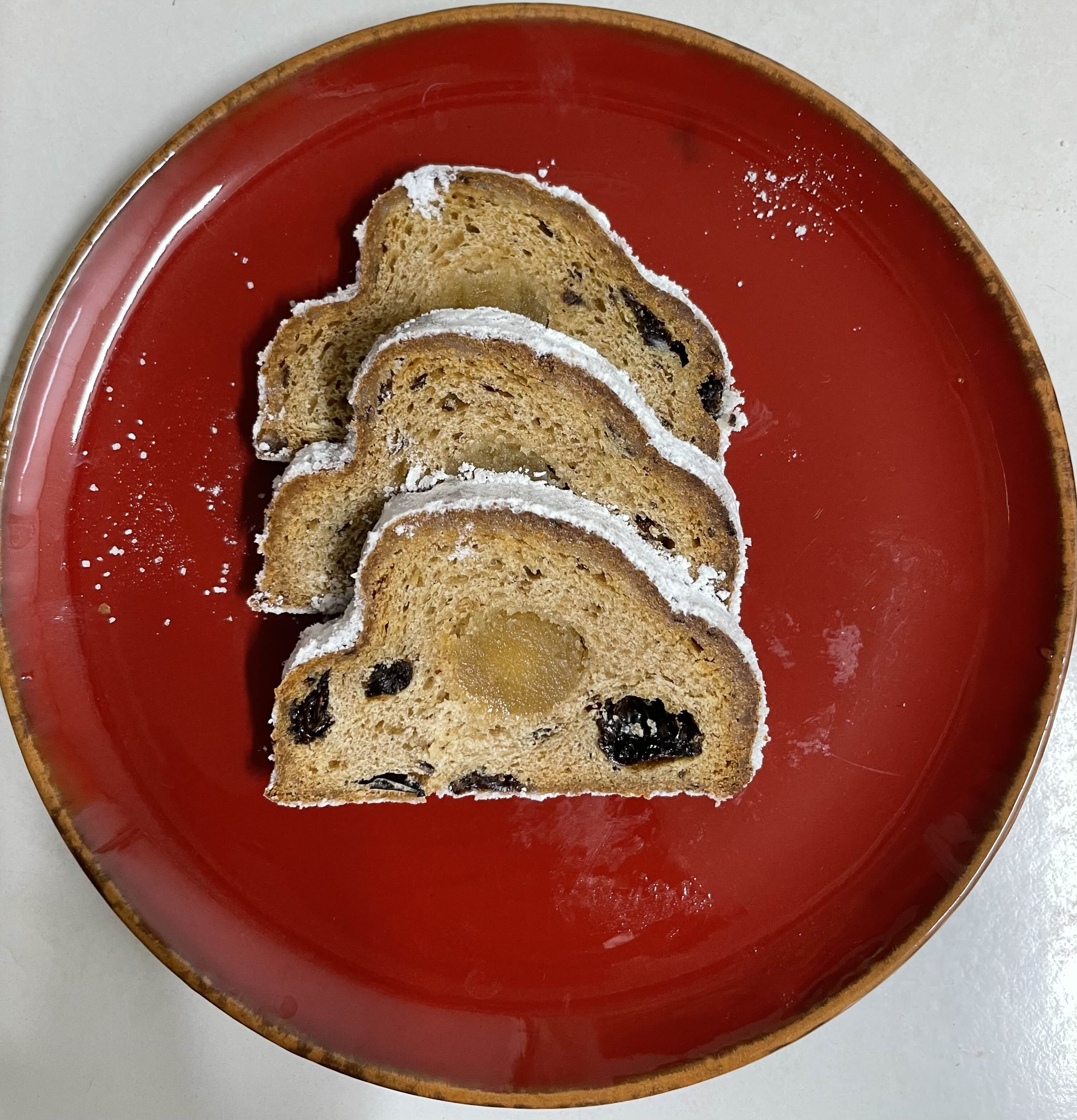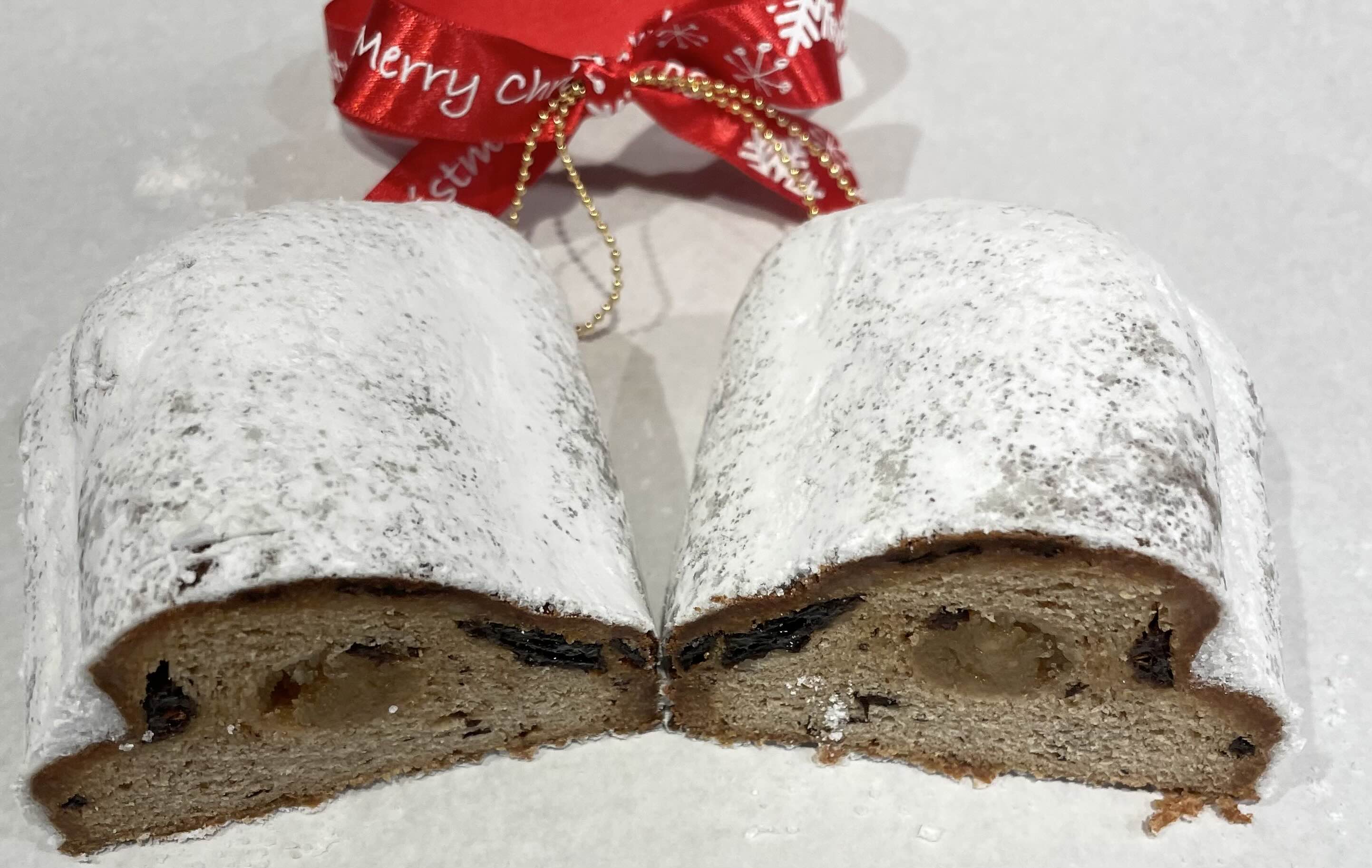 슈톨렌(Stollen)은 독일의 전통 크리스마스 빵으로, 과일과 견과류, 향신료를 듬뿍 넣고 버터와 설탕을 얹어 만든 달콤하고 풍미 깊은 디저트입니다. 원래 이름은 “크리스톨렌(Christstollen)”으로, 아기 예수를 상징하는 모양에서 유래되었습니다.