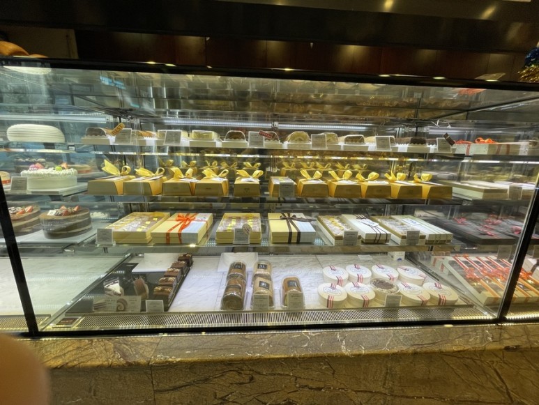 쇼케이스 안 맨 아랫줄에는 조각케잌 옆에
