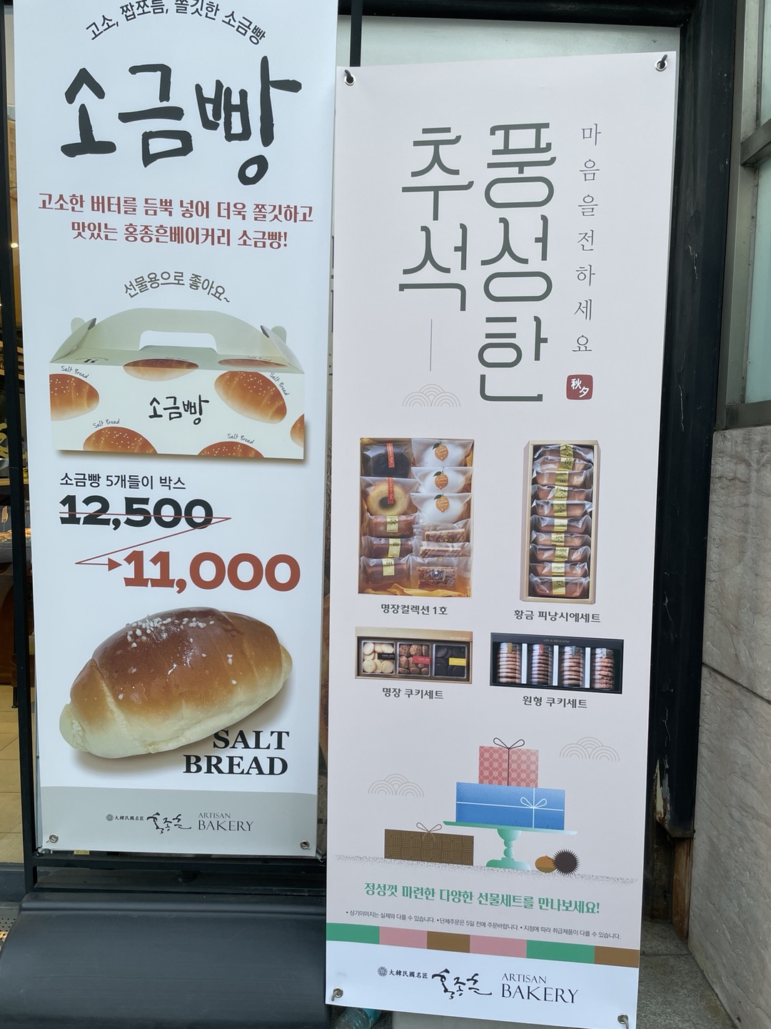 홍종흔 베이커리 반포점 명장 컬렉션1호, 명장 컬렉션 2호, 황금 휘낭시에세트, 명장 쿠키세트, 원형 쿠키세트를 추천드려요.